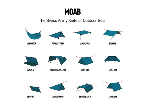 독특하고 다재다능한 MOAB는 해먹, 캐노피, A-프레임 비비, 기댈 수 있는 쉼터, 텐트 풋프린트 또는