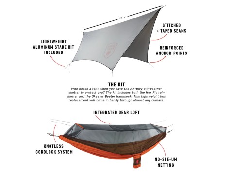 업데이트된 Skeeter Beeter XT와 Hexfly Rain Shelter를 모두 포함하는 Air Bivy는 완벽한 텐트 대체품입니다.